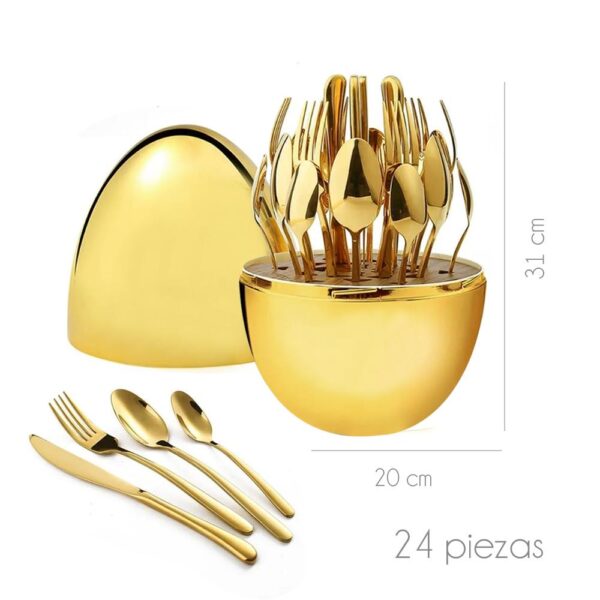 Juego de Cubiertos Dorado 24 piezas Decorativo Huevo